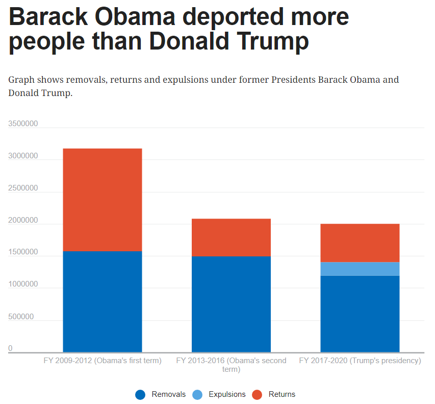 But did Trump deport fewer people than Obama? There are different deportation metrics, and Obama surpassed Trump’s numbers in each one. Immigrant rights advocates had dubbed Obama the “deporter-in-chief” by the time he left office in 2017.