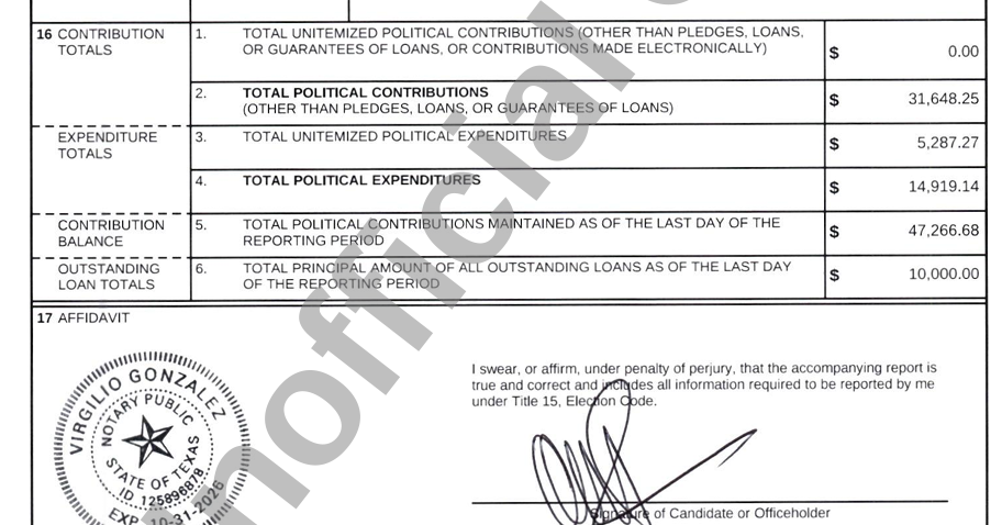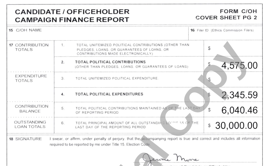 Only two candidates turned in a 30-day campaign report, Jerry Rodriguez and Jerome Moore.
