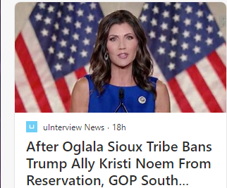 “I joined the U.S. Marine Corps and served honorably in foreign wars to protect the freedoms of all Americans, even Indians throughout the nation,” he stated. “I don’t to see our Indian people and reservations used as a basis to create a bogus border crisis just to help Trump get re-elected as President and Governor Noem his running mate as Vice-President.”