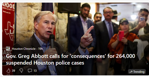 Gregg Abbott wants consequences for the 264,000 Suspended police cases. Should Houston fire the police officers who did the coding?