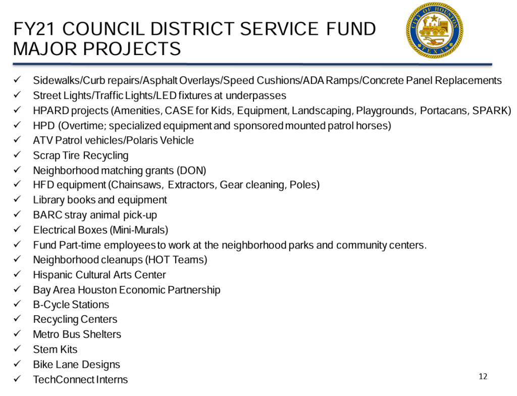 As I read an article in the Houston Chronicle, I wondered how the at-large council members use those funds. In my experience, they do not get involved in district concerns.