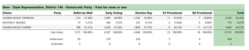 State Representative 146 voting compared to primary. Shawn Thierry would have us ban the bible from the schools.