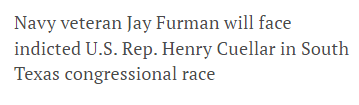 I would have written it as a MAGA cult member, Jay Furman, wins his primary and will face off against Democrat Henry Cuellar.
