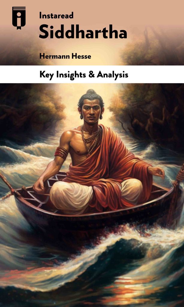 Siddhartha leans on the branch of a tree and watches the flow of the water and wishes to become part of it. He feels that he is at the end, that there is nothing left but to end himself and give his body to the crocodiles and creatures of the river. He sees his reflection and spits at it. He lowers himself closer to the surface, closer to death. But he hears something. A word, a sound, comes to him, from deep in his soul. It is the ‘om’, the perfect word. He suddenly realizes how close to death he had come and how miserable he was, and remembers the holiness he had forgotten. Source