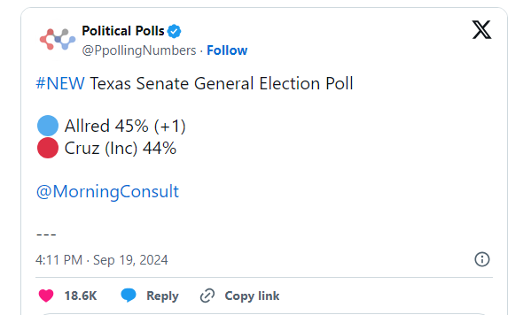 Colin Allred one point ahead on recent poll
