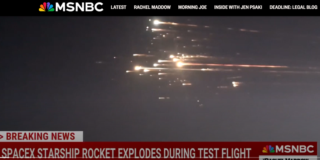 Musk and his Space X failures – raining rocket parts.