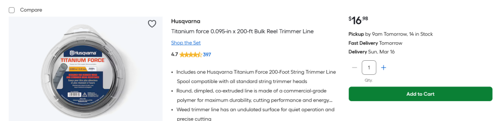 I was using my trimmer today when I noticed I was almost out of line. So I compared Amazon and Lowe’s.