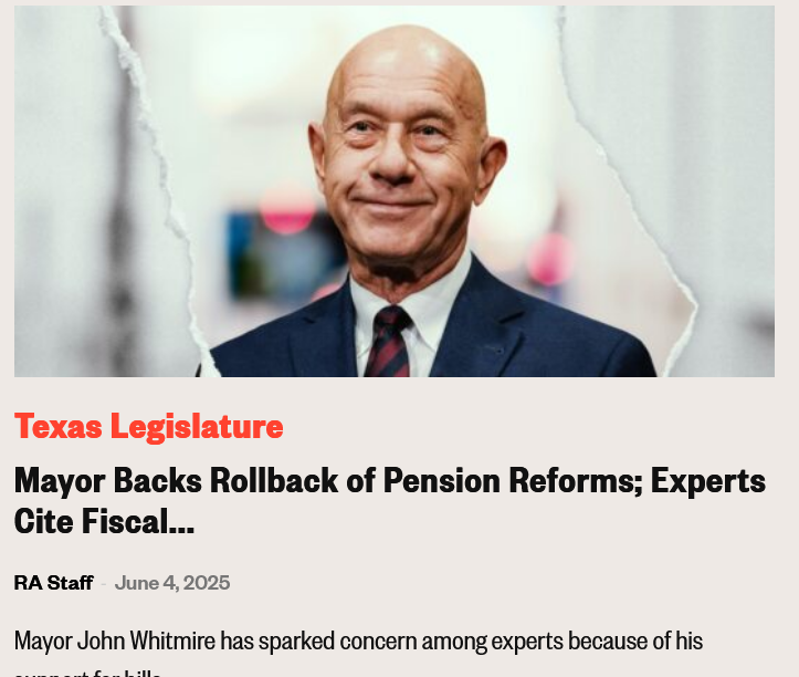 “Mayor John Whitmire has sparked concern among experts because of his support for bills that roll back reforms to Houston’s police and firefighters pensions, with some calling this move ill-considered and even “stupid”. The proposal is happening 8 years after the Legislature passed reforms for Houston’s employees pensions, which at this moment, are underfunded by $8.2 billion. Gov. Abbott’s desk is waiting for the House Bill 2688 to be signed, passed in both chambers almost unanimously, this bill leaves most reforms intact yet reverse key changes like letting police officers and firefighters retire after 20 years of service, regardless of their age. Past reforms closed this postponed retirement option plan, or DROP, to officers hired after 2004 and to firefighters hired after 2017, as reported by the Houston Chronicle.
