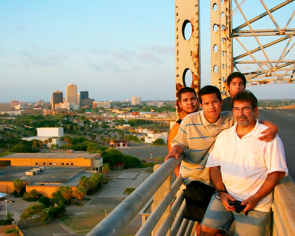 My sons and I are on top of the Harbor Bridge, Corpus Christi, Texas.