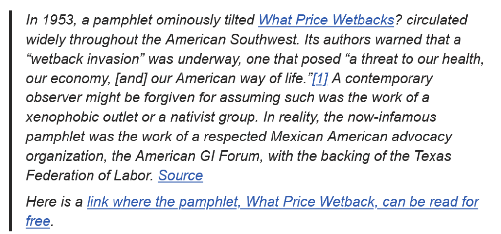 What is happening today happened in the 1950s. It was bound to happen as we Mexicans all look the same. The Gabachos all look the same with their colorless epidermis. My Native American ancestors called them pale faces.
