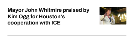 Too many incidents where ICE has been called by HPD officers when there was no need to do so. I go with the politician that being John Whitmire is speaking with a forked tongue.