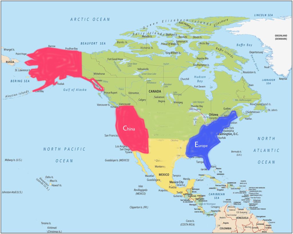Trump keeps threatening our neighbors and allies all around us. Soon, the following may be true, except that the US will be divided into four areas.