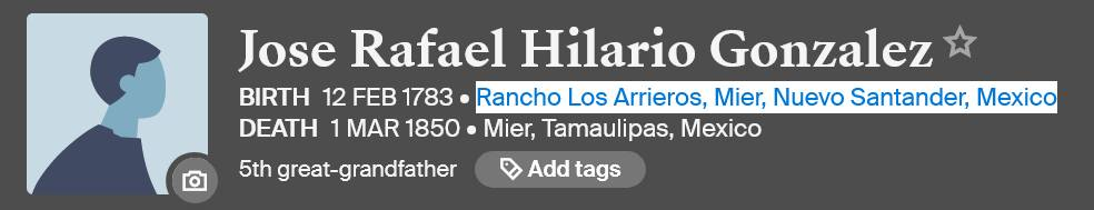 After I retired, I started researching my family’s history. Our family has been in what is now Texas, probably since the early 1700s. But it is difficult to know which side of the Rio Bravo, the Rio Grande, they were born on. Today I got lucky and found some material which more or less proved what I thought when it said they were born in Mier, which is in Mexico, but at one time, eighty percent (80%) of Mier was north of the Rio Grande River.