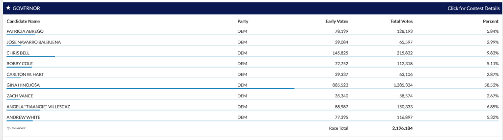 Fairly sure that if someone with a Spanish last name were in the Senate race, Talarico would have lost some votes. But Hinojose still outperformed him.