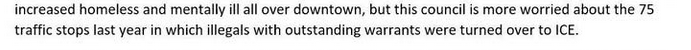 Let me make something clear: the warrants the union mentions are not judicial warrants; the people listed there may or may not have committed a crime, other than possibly being here illegally. Maybe the union forgot some incidents in which a call for help resulted in the caller being handed over to ICE.