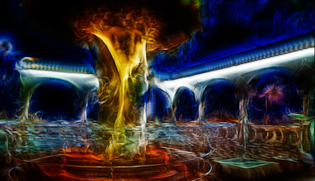 To get the image below, you need one Intentional Camera Movement (ICM): while holding your camera, move it slightly up or down during a slow shutter speed (e.g., 1/5 or 1/8 of a second). There are other ways, such as AI, that did not exist at the time.
