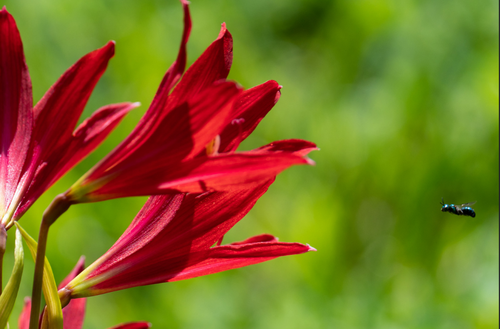 I managed to capture that very tiny flying insect as it was heading toward the flowers.